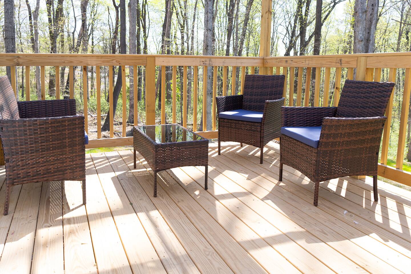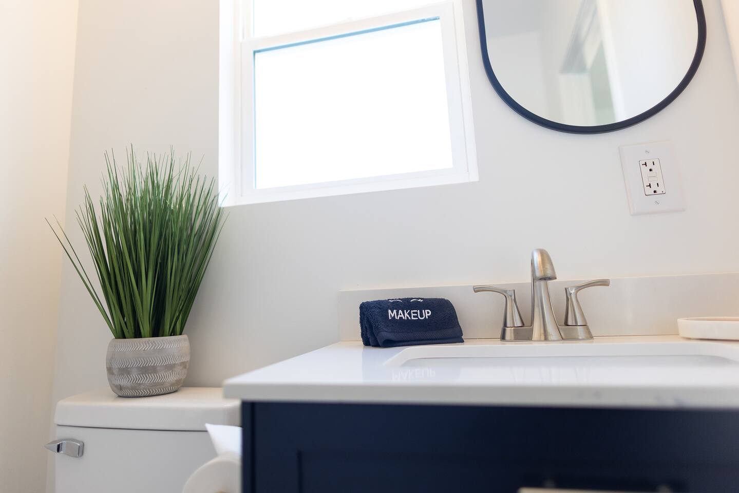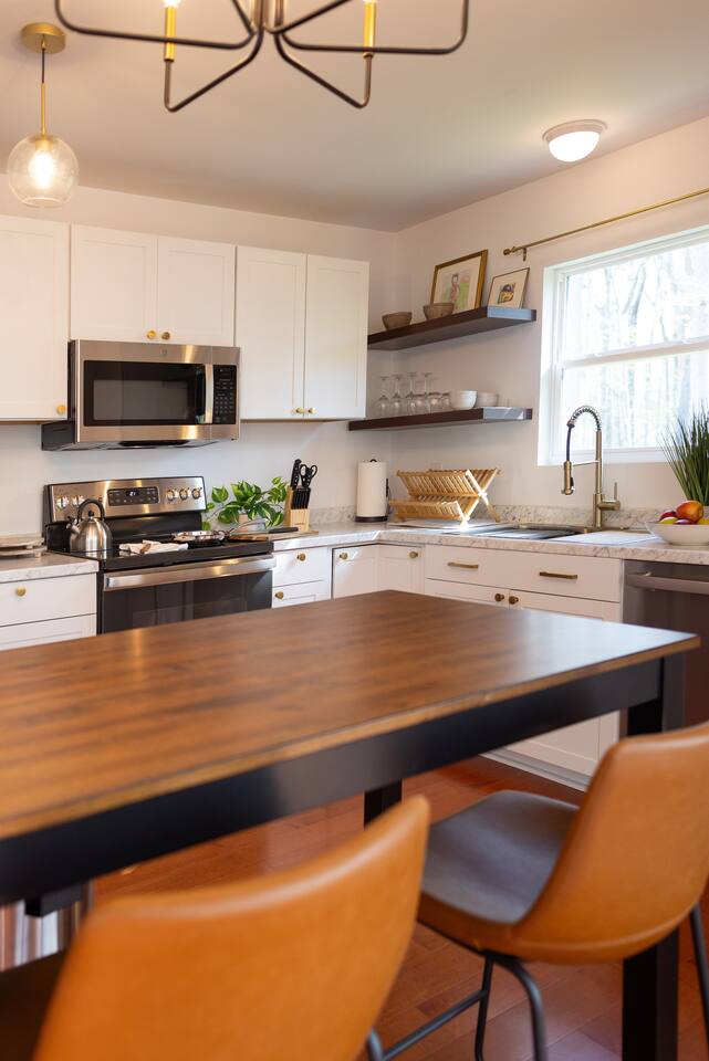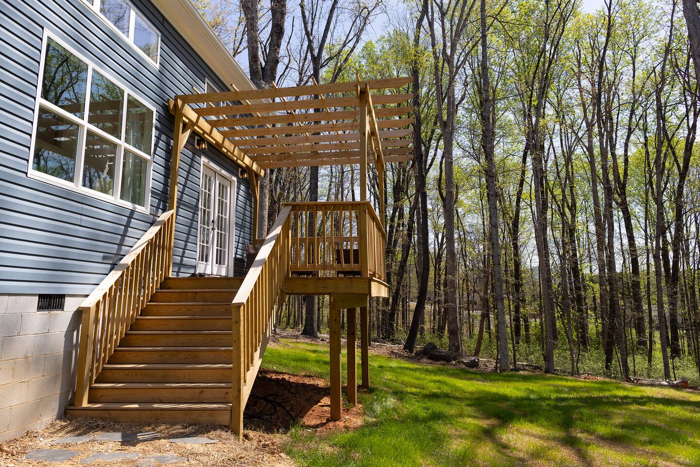 The brand new home contains two bedrooms and two baths, and sleeps 4 adults. Two queen bedrooms (one with an en suite full bathroom) are located on the second floor. The ground level contains a kitchen, open dining and living room, full bathroom, laundry closet, and a deck with pergola and outdoor seating. The house is fully stocked with linens, stoneware dishes, pot and pans, kitchen appliances, as well as extra pillows and blankets. There is a 40" Roku enabled TV in living room (bring your own login info for Netflix, etc). High speed wi-fi. Hardwood floors throughout. Hosts on site in entirely separate space, but are available if needed.